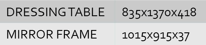 TOLEDO (AUSSIE MADE) DRESSING TABLE WITH MIRROR - ASSORTED COLOURS TOLEDO (AUSSIE MADE) DRESSING TABLE WITH MIRROR - ASSORTED COLOURS H x W x D